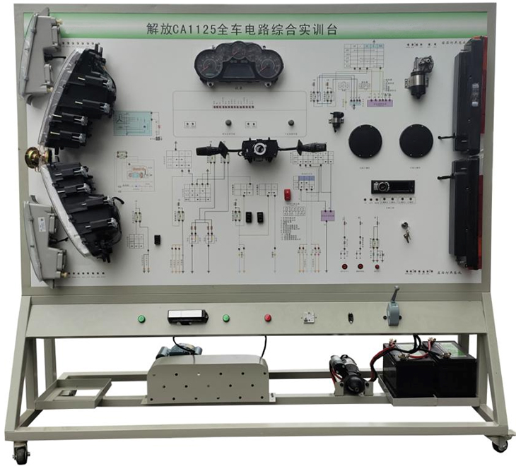 解放CA1125全車電路綜合實訓設備采用解放CA1125J柴油機整車電器實物為基礎,充分展示汽車儀表系統、燈光系統、雨刮系統、喇叭系統、發動機電器系統、起動系統和充電系統等汽車電器各系統的組成結構和工作過程。