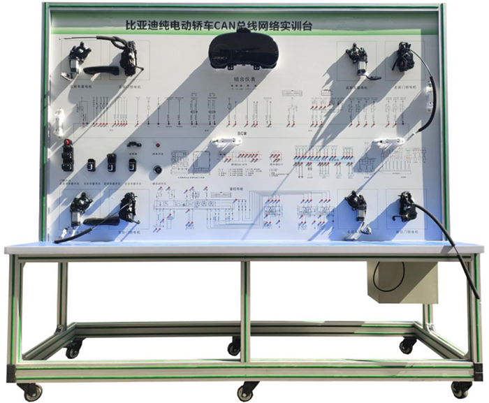 新能源比亞迪車載網(wǎng)絡實訓臺采用比亞迪e5 電動汽車CAN-BUS系統(tǒng)等真實器件制作的實驗實訓臺架,可電動汽車CAN-BUS系統(tǒng)相關的實驗實訓內(nèi)容。適合于各類院校對純電動車CAN總線網(wǎng)絡系統(tǒng)理論和維修實訓的拆裝與維護、結構與原理認知、系統(tǒng)操作、功能動態(tài)演示、故障檢測與診斷教學需要。