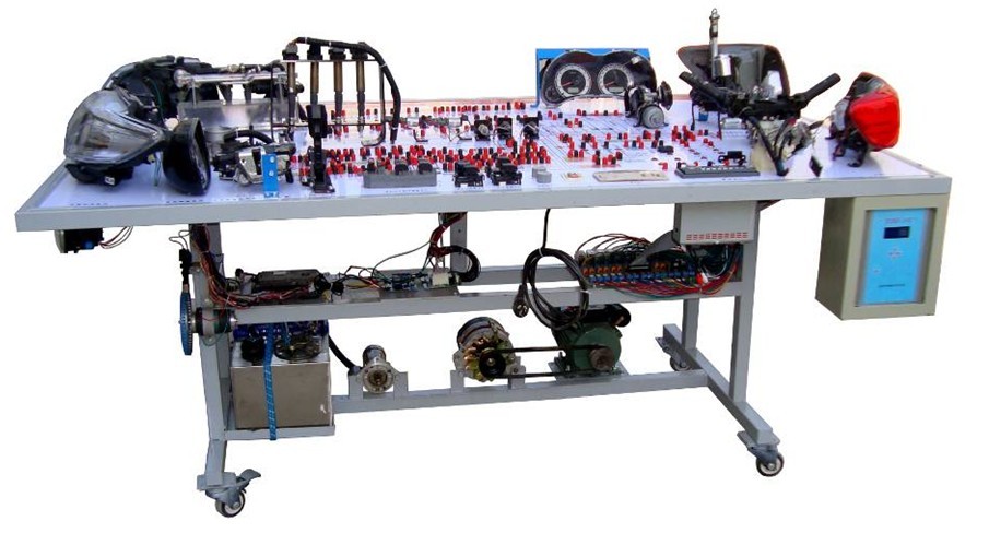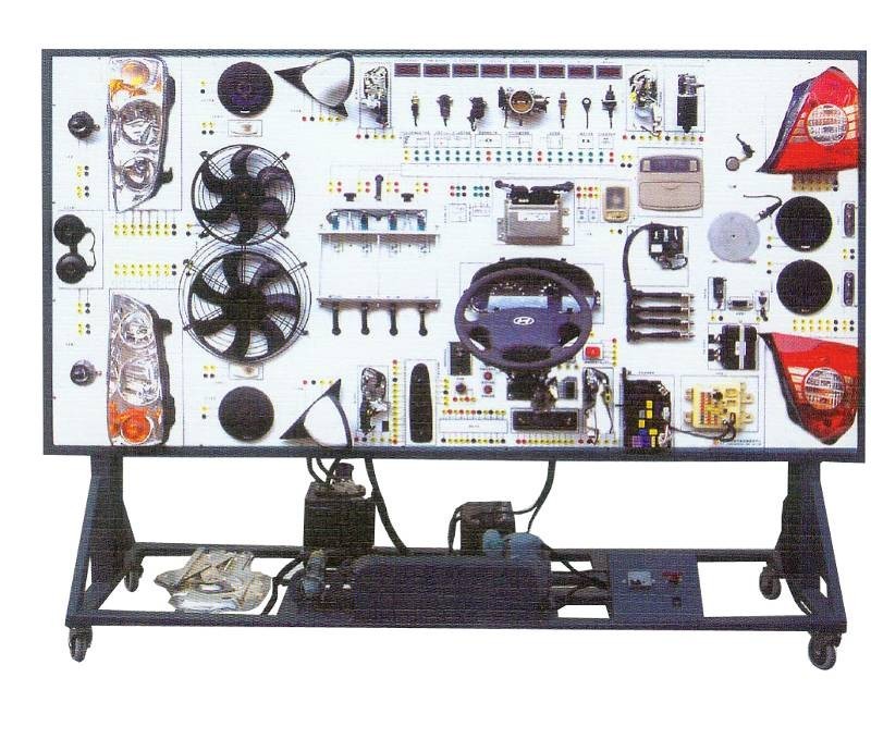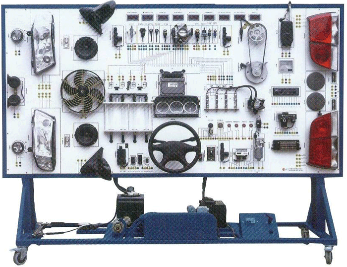 汽車電氣設備實訓室。汽車電器設備實訓室包含有汽車燈光系統、車載網絡系統、全車電器系統、汽車啟動系統、汽車空調系統、全車線路試驗臺、等實訓教學設備。該實訓室可以承擔《汽車構造》、《汽車電器設備》、《汽車電控系統》、《汽車檢測與診斷》等課程的實踐教學任務。可以用于研究、分析全車電器系統、燈光系統、儀表系統等電器設備的電路及功能。利用這些系統進行實踐教學,使學生熟悉汽車電器的結構和工作原理,掌握各個系統的基本組成電路,掌握主要電路的檢測方法和系統的故障特征,從而具有一定的檢測和調校能力。
