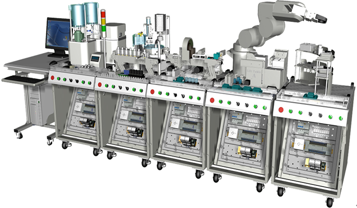 機(jī)電一體化技術(shù)實(shí)訓(xùn)設(shè)備是指機(jī)械技術(shù)、電工電子技術(shù)、微電子技術(shù)、信息技術(shù)、傳感器技術(shù)、接口技術(shù)、信號變換技術(shù)等多種技術(shù)進(jìn)行有機(jī)地結(jié)合,并綜合應(yīng)用到實(shí)際中去的技能實(shí)訓(xùn)綜合技術(shù),現(xiàn)代化的自動生產(chǎn)設(shè)備幾乎可以說都是機(jī)電一體化的設(shè)備。自動化生產(chǎn)線實(shí)訓(xùn)考核系統(tǒng),可以培養(yǎng)和提高學(xué)生專業(yè)綜合能力,是一種重要的實(shí)訓(xùn)設(shè)備。自動化生產(chǎn)線實(shí)訓(xùn)系統(tǒng)、基于PLC技術(shù)的自動化生產(chǎn)線實(shí)訓(xùn)考核系統(tǒng),可以培養(yǎng)和提高學(xué)生專業(yè)綜合能力,是一種重要的實(shí)訓(xùn)設(shè)備。自動化生產(chǎn)線實(shí)訓(xùn)系統(tǒng)整體包括自動供料、檢測傳輸、檢測加工、自動裝配、自動分揀等工序,很好的將機(jī)械技術(shù)、微電子技術(shù)、電工電子技術(shù)、傳感測試技術(shù)、接口技術(shù)、信息變換技術(shù)、網(wǎng).絡(luò)通信技術(shù)等多種技術(shù)有機(jī)地結(jié)合。該系統(tǒng)中自動分揀站的設(shè)計過程,包括系統(tǒng)硬件設(shè)計、PLC控制設(shè)計和程序設(shè)計方法。現(xiàn)代化的自動生產(chǎn)設(shè)備的最大特點(diǎn)是它的綜合性和系統(tǒng)性,在這里,機(jī)械技術(shù)、微電子技術(shù)、電工電子技術(shù)、傳感測試技術(shù)、接口技術(shù)、信息變換技術(shù)、網(wǎng)絡(luò)通信技術(shù)等多種技術(shù)有機(jī)地結(jié)合,并綜合應(yīng)用到生產(chǎn)設(shè)備中:而系統(tǒng)性指的是,生產(chǎn)線的傳感檢測、傳輸與處理、控制、執(zhí)行與驅(qū)動等機(jī)構(gòu)在微處理單元的控制下協(xié)調(diào)有序地工作,有機(jī)地融合在一起。可編程序控制器(PLC)以其高抗干擾能力、高可靠性、高性能價格比且編程簡單而廣泛地應(yīng)用在現(xiàn)代化的自動生產(chǎn)設(shè)備中,擔(dān)負(fù)著生產(chǎn)線的大腦一微 處理單元的角色。因此,培養(yǎng)掌握機(jī)電一體化技術(shù),掌握PLC技術(shù)及PLC網(wǎng)絡(luò)技術(shù)的技術(shù)人材是當(dāng)務(wù)之急。而一套基于PLC技術(shù)的自動化生產(chǎn)線實(shí)訓(xùn)考核設(shè)備可以模擬一個與實(shí)際生產(chǎn)情況+分接近的控制過程,使學(xué)習(xí)者得到一個非常接近于實(shí)際的教學(xué)設(shè)備環(huán)境,從而縮短了理論教學(xué)與實(shí)際應(yīng)用之間的距離。自動分揀站需完成對上一單元送來的已加工、裝配的工件進(jìn)行分揀。使不同顏色的工件從不同的料槽分流的功能。當(dāng)輸送站送來工件放到傳送帶上并為入料口光電傳感器檢測到時,即啟動變頻器,工件開始送入分揀區(qū)進(jìn)行分揀。上海碩博弘揚(yáng)大國工匠精神, 發(fā)展職業(yè)教育,應(yīng)用教學(xué)設(shè)備,為企業(yè)培養(yǎng)高技能人才,而專業(yè)生產(chǎn):光機(jī)電一體化(自動生產(chǎn)線)實(shí)訓(xùn)裝置、灌裝自動化生產(chǎn)線實(shí)訓(xùn)裝置、工業(yè)自動生產(chǎn)線實(shí)訓(xùn)裝置 、工業(yè)控制模擬實(shí)訓(xùn)裝置 、機(jī)電一體化組合實(shí)訓(xùn)平臺 、機(jī)電一體化綜合實(shí)訓(xùn)考核裝置、自動化生產(chǎn)安裝與調(diào)試實(shí)訓(xùn)裝置 、光機(jī)電一體化高速分揀實(shí)訓(xùn)系統(tǒng) 、典型機(jī)電設(shè)備安裝與控制實(shí)訓(xùn)裝置、模塊式柔性自動環(huán)形生產(chǎn)線實(shí)驗系統(tǒng)(帶機(jī)器人工程型)、立體停車庫實(shí)物教學(xué)實(shí)驗裝置、機(jī)電一體化柔性生產(chǎn)線加工實(shí)訓(xùn)系統(tǒng)(5站)、網(wǎng)絡(luò)型模塊式柔性自動化生產(chǎn)線實(shí)驗系統(tǒng)、模塊式柔性自動環(huán)形生產(chǎn)線實(shí)驗系統(tǒng)(工程型)、柔性生產(chǎn)制造實(shí)驗系統(tǒng)(工程型)、現(xiàn)代物流倉儲自動化實(shí)驗系統(tǒng)、運(yùn)動實(shí)訓(xùn)裝置、循環(huán)搬運(yùn)自動控制實(shí)訓(xùn)裝置、平面雙軸運(yùn)行控制實(shí)訓(xùn)裝置、工業(yè)機(jī)械手實(shí)訓(xùn)裝置、物料分揀實(shí)訓(xùn)裝置、機(jī)械手實(shí)訓(xùn)裝置 、立體倉庫實(shí)訓(xùn)裝置、十字路口交通燈實(shí)訓(xùn)系統(tǒng)、機(jī)電液氣一體化綜合實(shí)訓(xùn)裝置、光機(jī)電一體化高速分揀實(shí)訓(xùn)系統(tǒng)、步進(jìn)伺服控制綜合實(shí)訓(xùn)平臺、光機(jī)電氣一體化控制實(shí)訓(xùn)系統(tǒng)、 光機(jī)電一體化綜合實(shí)訓(xùn)考核裝置、光機(jī)電一體化實(shí)訓(xùn)考核裝置、光機(jī)電一體化實(shí)訓(xùn)考核裝置、光機(jī)電氣一體化控制實(shí)訓(xùn)系統(tǒng)、自動生產(chǎn)線拆裝與調(diào)試實(shí)訓(xùn)裝置、柔性自動化生產(chǎn)線實(shí)訓(xùn)系統(tǒng)。