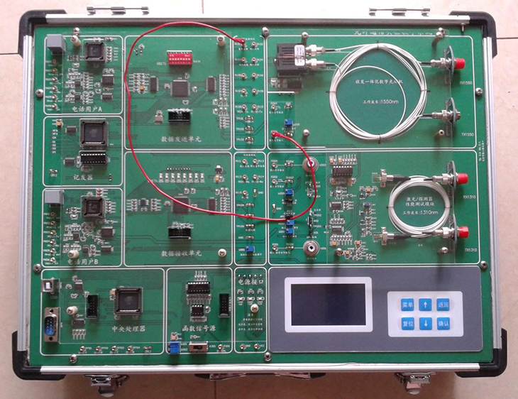 光纖通信實(shí)驗(yàn)箱,光纖通信實(shí)驗(yàn)臺(tái),光纖通信實(shí)驗(yàn),光纖通信綜合實(shí)驗(yàn)箱,有很強(qiáng)的信道編碼實(shí)驗(yàn):CMI、5B1C、5B6B、加擾解擾等線路編碼功能;增強(qiáng)了復(fù)接解復(fù)接功能、信令功能、系統(tǒng)性實(shí)驗(yàn)功能,在信令的支持下能完成平臺(tái)間的電話呼叫接續(xù)系統(tǒng)實(shí)驗(yàn);增加了液晶鍵盤控制,取代原有的接插件;光輸入、輸出接口均設(shè)計(jì)朝外,方便連接其它光器件;留有硬件擴(kuò)展接口,可選配LED或LD性能測(cè)試模塊,具有無光告警、自動(dòng)功率控制APC等功能。 光纖通信實(shí)驗(yàn)平臺(tái)布局美觀、結(jié)構(gòu)緊湊、并附有機(jī)玻璃保護(hù)。適合各大院校光通信專業(yè)的專科生、本科生、研究生以及教師和相關(guān)的科研技術(shù)人員使用。