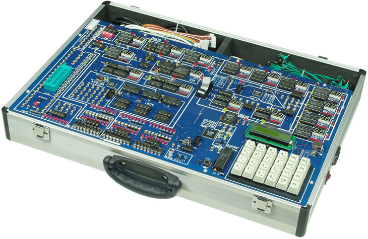 計算機組成原理與系統(tǒng)結構實驗箱 CPTH+是我公司吸收了國內先進的計算機組成原理實驗儀的優(yōu)點,研制開發(fā)的一款八位、十六位兼容設計的計算機組成原理和系統(tǒng)結構實驗儀,系統(tǒng)由八位機主板和十六位機擴展實驗板組成,主板以八位機模式,用TTL74系列器件加多片在線可編程CPLD構建模型機部件,大大提高了實驗系統(tǒng)可靠性和二次開發(fā)的靈活性,讓學生以可視方式觀察CPU內各部件工作過程和模型機的實現(xiàn)。擴展實驗板以十六位機模式,用12萬門EP1C6芯片構建模型機所有部件,并配置64K×16位存儲器,通過VHDL語言編程,可設計16位機的部件和模型機,學生將設計好的電路下載到FPGA芯片上,實現(xiàn)16位機的部件和模型機功能;也可完成其它設計性實驗和課程設計實驗。在對八位機了解的基礎上,讓學生對十六位計算機組成原理有更深刻的理解,實現(xiàn)質的飛躍,為FPGA設計CPU打下堅實基礎。滿足不同層次的教學的需求。系統(tǒng)軟件提供了詳盡的信息窗口、運行圖表和多類幫助信息,使教學的過程輕松自如。