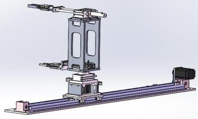 本站的功能是完成向各個工作單元輸送工件,系統分為雙機械手單元和直線位移位置精確控制單元兩部分,系統上電后,先執行回原點操作,當到達原點位置后,若系統啟動,供料站物料臺檢測傳感器檢測到有工件時,機械手整體先提升到位后手爪伸出到位后手爪夾緊,手爪夾緊到位手爪開始縮會機械手整體下將到位后,伺服電機開始工作按設定好的脈沖量到加工站。加工站到位后機械手整體提升,提升到位后手爪伸出伸出到位后機械手整體下降,下降到位后工件已放入加工站物料臺上,然后手爪松開,松開到位后機械手回縮,等加工站加工完成后再將工件送到裝配站進行大小料裝配,裝配完成后機械手抓取物料送到分揀站進行分揀,這樣雙機械手的一個加工運動過程就完成了。只要料筒不缺料會持續以上過程。當料筒出現缺料后,機器人會搬運過來物料,機械手會運行到取料位置抓取機器人上的小料,然后放入小料筒中,然后返回原點,當機器人再次搬運過來物料,機械手會運行到取料位置抓取機器人上的大料,然后放入大料筒中,這樣一個物料的拆分過程就完成了,直到把碼垛料臺上的物料全部拆分完成后為止。