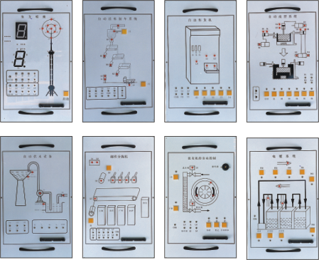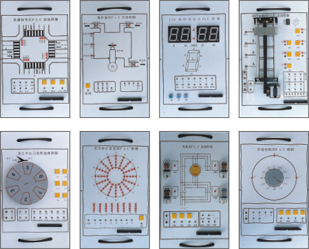 該裝置是為了配合PLC可編程控制器實驗臺使用而設計的外接演示裝置。它由LED發光二極管、大型LED數碼管、直流電機、步進電機等執行機構用其他外圍電路模擬實際工業控制過程中的狀態,它形象生動的演示了PLC的整個執行過程。通過該裝置,可以鍛煉學生的動手能力,能夠形象生動的執行機構驗證自己編寫程序的正確性,掌握PLC的實際應用,增強學生對PLC的學習興趣。演示掛箱后蓋由鋁合金注塑而成,箱體結構合理,工藝先進,美觀大方。該裝置在演示屏上位置可任意移動、互換。