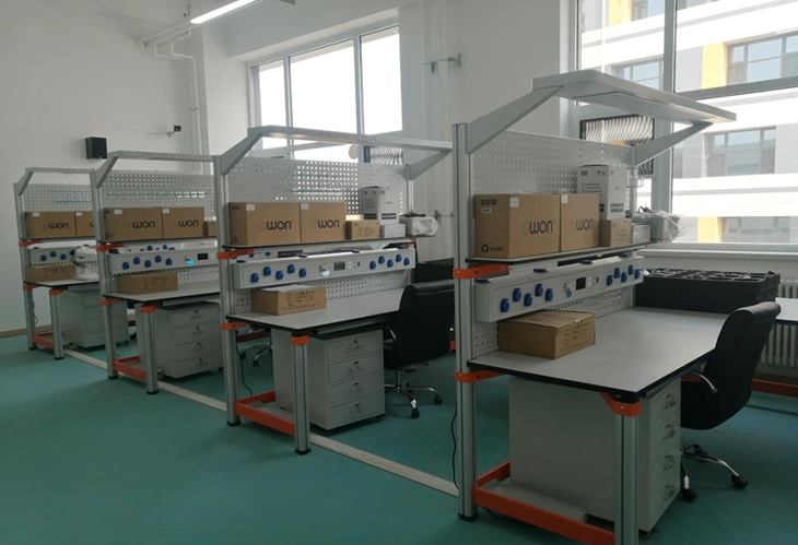 電子工藝實(shí)習(xí)室是供學(xué)生焊接練習(xí)、電子產(chǎn)品組裝調(diào)試操作的實(shí)驗(yàn)室,學(xué)生進(jìn)行焊接操作。配備的儀器設(shè)備主要有直流穩(wěn)壓電源、示波器、萬用表、工具箱等。為了改善實(shí)習(xí)室的空氣環(huán)境衛(wèi)生,還專門配備了抽風(fēng)系統(tǒng)。開設(shè)的課程有《電子工藝實(shí)習(xí)》、《電工實(shí)習(xí)》,包括電路元件的選配、電子產(chǎn)品的安裝、焊接和性能測試等環(huán)節(jié)。電子工藝實(shí)驗(yàn)實(shí)訓(xùn)室設(shè)備主要面向汽車、機(jī)械、電信、電氣、計(jì)算機(jī)、經(jīng)濟(jì)、管理等學(xué)院的學(xué)生,培養(yǎng)學(xué)生的動(dòng)手實(shí)踐能力、分析問題和解決問題的能力以及創(chuàng)新精神。