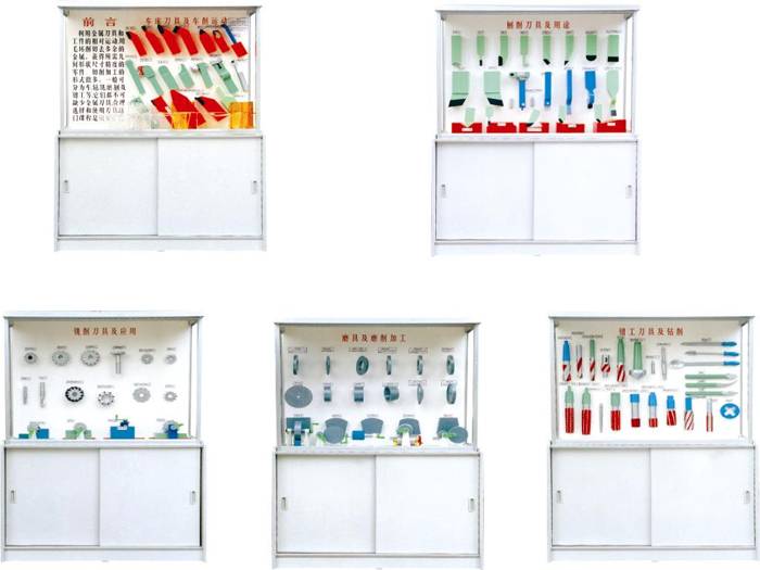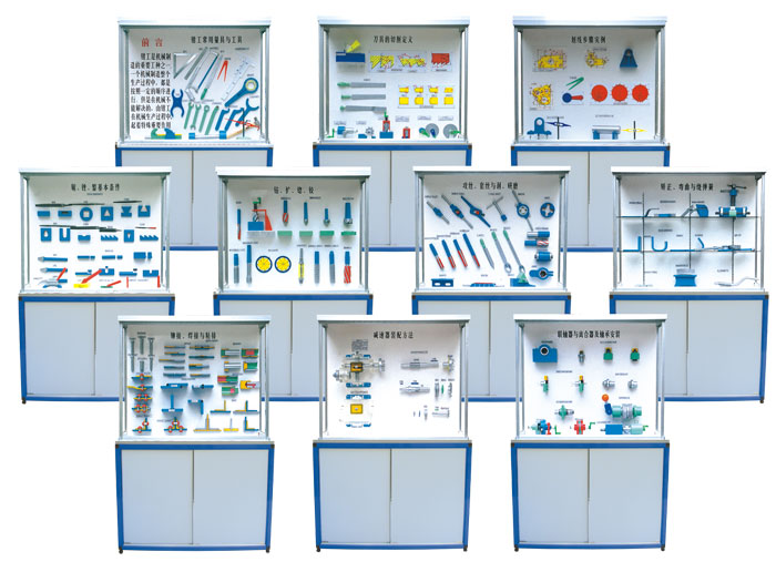 陳列柜、機械陳列柜、電機與變壓器陳列柜、機械基礎陳列柜、機械零件陳列柜、減速器陳列柜、機械原理陳列柜、機械制圖陳列柜、模具示教陳列柜、金屬切削陳列柜、金屬工藝學陳列柜、公差配合陳列柜、鉗工工藝學陳列柜、金屬刀具陳列柜、機床夾具陳列柜、車工工藝學陳列柜、機械設計基礎陳列柜、機械綜合陳列柜、機械制圖模型、立體示教模型、電機模型、變壓器模型、透明塑膠模具、五金教學模具、機械教學掛圖、機床電氣實訓設備、機床維修考核設備、數控車床綜合實訓考核實驗臺、機電一體化實驗臺、光機電一體化實訓設備、工程制圖實驗室設備,液壓氣動PLC控制實驗臺、透明液壓注塑機模型、透明注塑機模模型、冷沖圧機模型、多功能工程制圖桌、機械創新搭接實驗臺、教學生產型數控車床、數控銑床、機電一體化《數控編程實驗》、可編程控制實驗臺、客貨兩用教學仿真電梯實訓設備、鉗工實訓設備、機械原理、機械零件、金屬切削刀具、公差配合、車工工藝學、鉗工工藝學、等系列陳列柜以及液壓演示臺