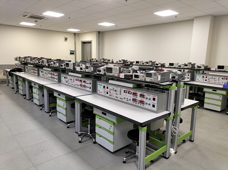 電子實驗室是主要服務(wù)電子類專業(yè)開設(shè)的主干技術(shù)基礎(chǔ)課《模擬電子技術(shù)》和《數(shù)字電子技術(shù)》的基礎(chǔ)實驗、設(shè)計性實驗、綜合設(shè)計性實驗、現(xiàn)代電子設(shè)計研究性等實驗和課程設(shè)計等實踐教學(xué)環(huán)節(jié)。