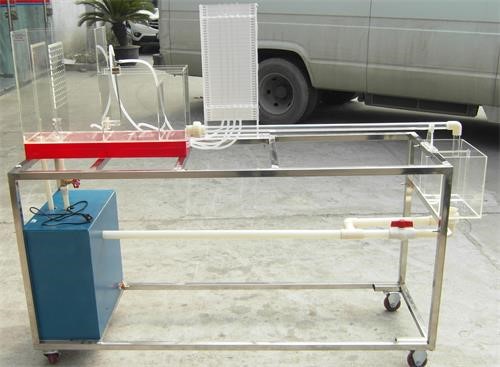 主要配置:儲水箱; 上水管;溢流管;整流柵;溢流板;溢流箱;畢托管;差壓計;閥門 測壓計;調節閥;回水箱;計量箱;回水管;移動式不銹鋼實驗臺。