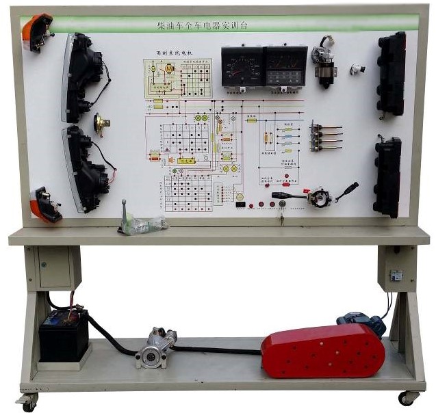 全車電路板試教板教學(xué)設(shè)備采用 全新東風(fēng)牽引車EQ2102 柴油機(jī)整車電器實(shí)物為基礎(chǔ),充分展示汽車儀表系統(tǒng)、燈光系統(tǒng)、雨刮系統(tǒng)、喇叭系統(tǒng)、發(fā)動機(jī)電器系統(tǒng)、起動系統(tǒng)和充電系統(tǒng)等汽車電器各系統(tǒng)的組成結(jié)構(gòu)和工作過程。