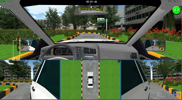 3)具有座艙和顯示器的互動視景系統,并具有錯誤駕駛記錄和提示功能。互動視景系統應具備圖形工作站、顯示設備、音響功放等組成,可實現駕駛員前景140度以上視角的屏幕顯示。