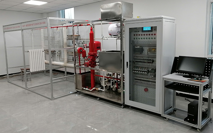 2、消防給水系統:主要有給水箱、噴淋泵、穩壓罐、濕式報警閥、壓力開關、水流指示器、消防給水管道、閉式噴淋頭等組成。管路采用鍍鋅管進行設計,可進行鍍鋅管的切割、套絲、安裝和通水試驗操作,通過控制系統可實現噴淋滅火功能。