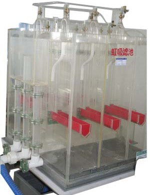 2.虹吸濾池為透明有機玻璃制造,可觀察污水在各腔室內的運行情況。