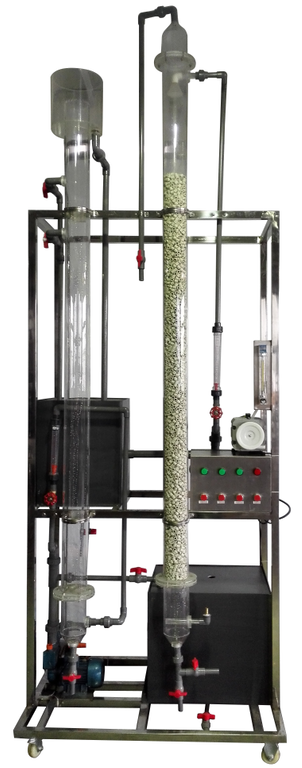 3.吹脫柱:尺寸Φ100×1600mm,有機玻璃,δ=5mm,內裝拉西環顆粒填料。