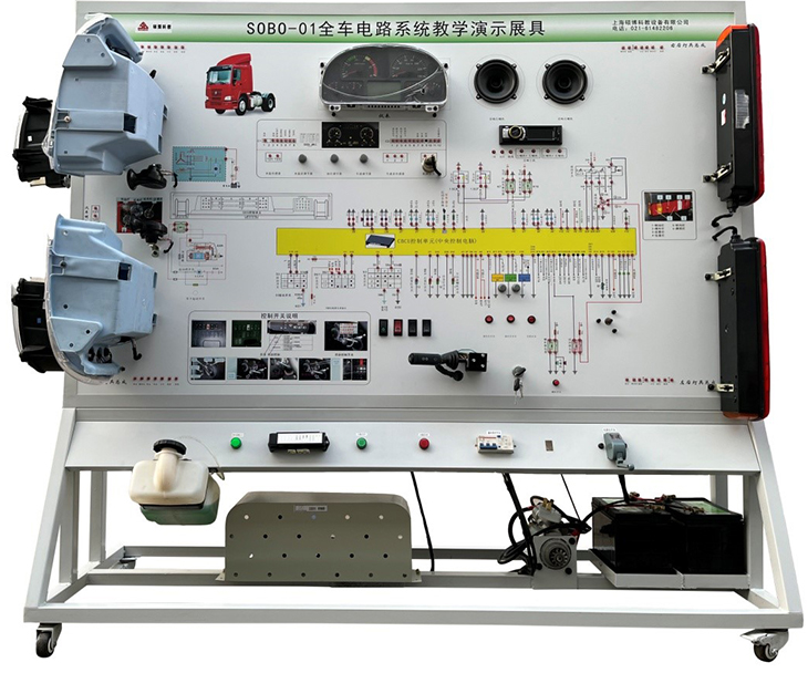 全車電路板試教板教學設備采用 全新豪沃1167 柴油機整車電器實物為基礎,充分展示汽車儀表系統、燈光系統、雨刮系統、喇叭系統、發動機電器系統、起動系統和充電系統等汽車電器各系統的組成結構和工作過程。
