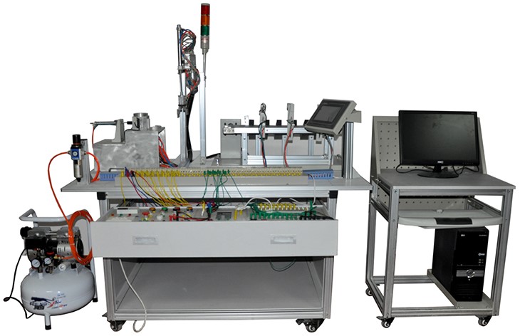 本設備主要包括實訓臺架、典型的機電一體化設備的機械部件、PLC模塊、變頻器模塊、按鈕模塊、電源模塊、模擬生產設備實訓模塊、接線端子排和各種傳感器等組成。整體結構采用開放式和拆裝式,實訓裝置用于機械部件組裝,可根據現有的機械部件組裝生產設備,也可添加機械部件組裝其他生產設備,使整個裝置能夠靈活的按教學或競賽要求組裝具有生產功能的機電一體化設備。