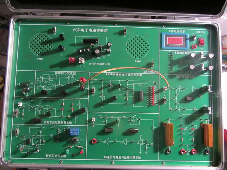 汽車電子電路實驗箱結合汽車電學的典型基本電路,由淺到深地設計了二極管和三極管基本實驗、線性集成穩壓電源實驗、噴油器驅動實驗、轉速信號測量與處理實驗、水箱水位過低報警實驗、轉向閃光器實驗等六個實驗項目,提供了一個給學生提高動手能力,深入理解汽車電學基礎知識的實驗平臺。