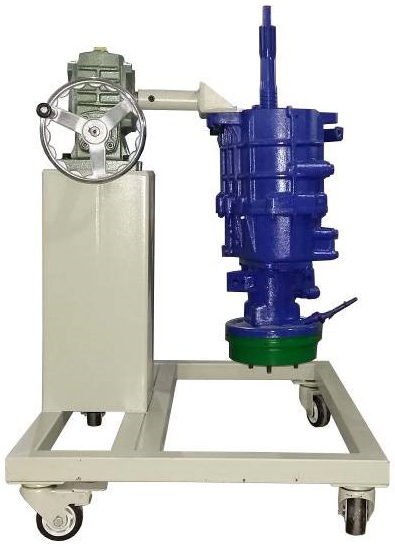 采用減速翻轉機構,可使變速器旋轉任意角度,并能任意位置鎖止,便于學生從不同的角度進行拆卸和裝配。