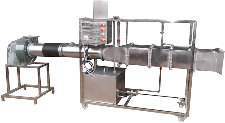 循環(huán)防腐水泵,轉(zhuǎn)子流量計(jì)、風(fēng)冷冷凝器,翅片管式換熱器,風(fēng)洞實(shí)驗(yàn)段,多翼式低噪音離心風(fēng)機(jī),自動(dòng)調(diào)節(jié)風(fēng)門,笛形管及差壓測(cè)風(fēng)速裝置,加熱由固體調(diào)壓模塊無(wú)級(jí)調(diào)節(jié),控制測(cè)試儀表箱,不銹鋼加熱水箱,8路萬(wàn)能信號(hào)輸入巡檢儀顯示溫度、水和風(fēng)的阻力及風(fēng)速。
