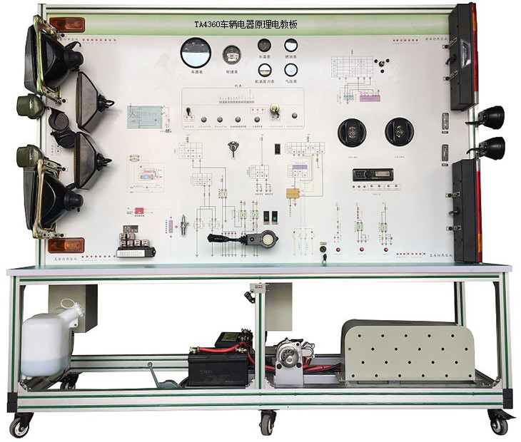該設備采用泰安TA4360柴油機整車電器實物為基礎,充分展示汽車儀表系統(tǒng)、燈光系統(tǒng)、雨刮系統(tǒng)、喇叭系統(tǒng)、發(fā)動機電器系統(tǒng)、起動系統(tǒng)和充電系統(tǒng)等汽車電器各系統(tǒng)的組成結構和工作過程。