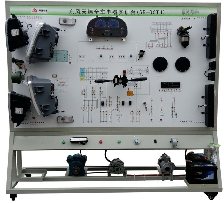 電器電路實訓臺(東風天錦運輸車電器電路實驗臺)該設備采用全新 東風天錦 柴油機整車電器實物為基礎,充分展示汽車儀表系統、燈光系統、雨刮系統、喇叭系統、發動機電器系統、起動系統和充電系統等汽車電器各系統的組成結構和工作過程。