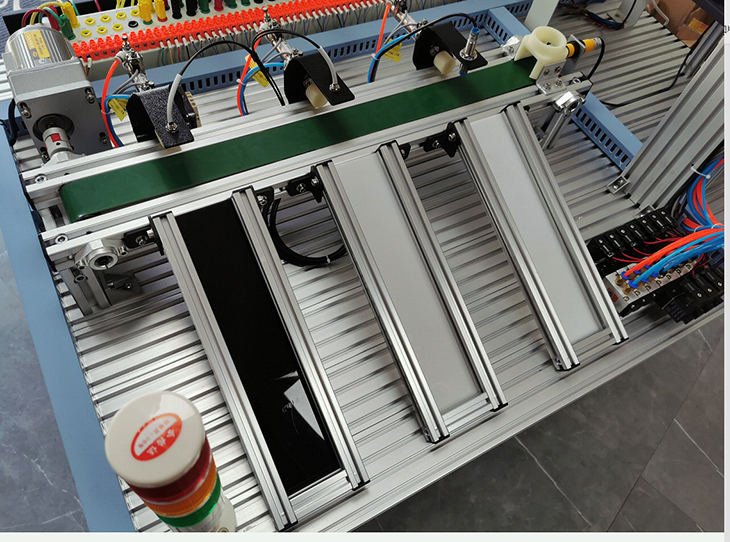 模塊、變頻器模塊、按鈕模塊、電源模塊、模擬生產(chǎn)設(shè)備實(shí)訓(xùn)模塊(包含上料單元、皮帶輸送檢測單元、氣動(dòng)機(jī)械手搬運(yùn)單元、物料傳送倉儲(chǔ)單元)、觸摸屏、接線端子排和各種傳感器等組成。采用開放式和拆裝式結(jié)構(gòu),可根據(jù)現(xiàn)有的機(jī)械部件組裝生產(chǎn)設(shè)備,使整個(gè)裝置能夠靈活的按實(shí)訓(xùn)教學(xué)或競賽要求組裝具有生產(chǎn)功能的光機(jī)電一體化設(shè)備。模塊采用工業(yè)標(biāo)準(zhǔn)結(jié)構(gòu)及抽屜式模塊放置架,互換性強(qiáng)。