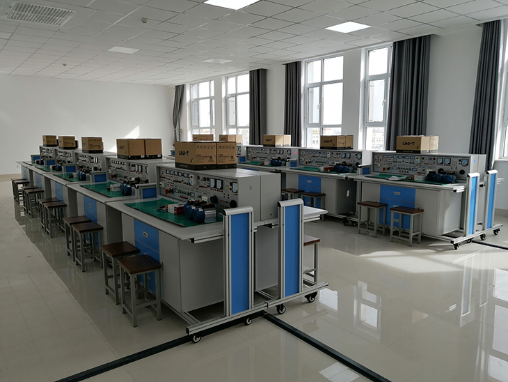 電工實訓室設備主要面向自動化專業學生,通過實訓教學訓練學生熟練掌握電工儀表的使用、常用低壓電器元件的使用、三相交流電動機控制配電線路接線、三相交流電動機控制線路故障排查與檢修,使學生具備工業企業低壓配電基本技術和技能。